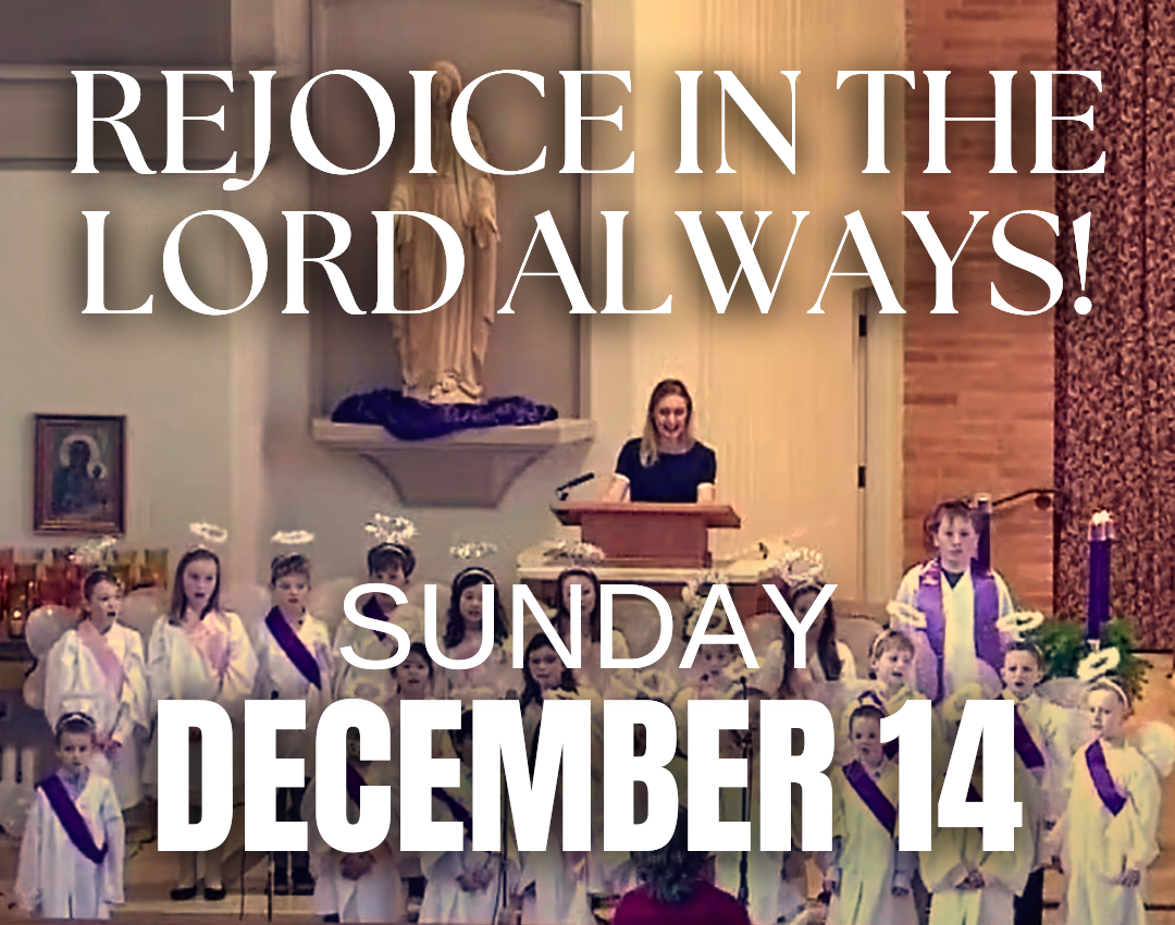 The children of Faith Formation will celebrate the Advent season by singing during the Gaudete Mass on Sunday, December 14, at 11AM. Following the Mass, all parishioners are invited to enjoy hot cocoa and treats with friends in the Family Center. Rejoice, and be glad for the coming of Our Savior is near!