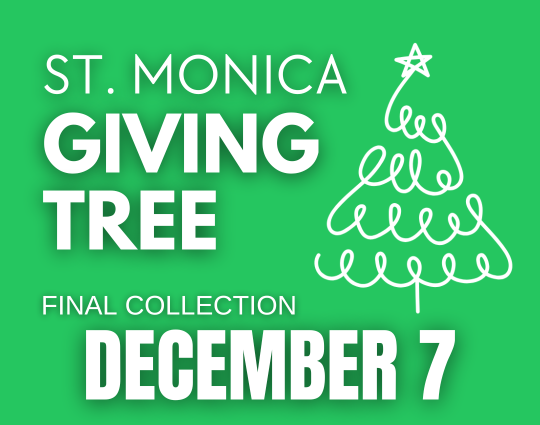 The St. Monica Giving Tree is back! This year we are supporting three different ministries: Operation Nightwatch (Collecting warm men's socks, gloves, and beanies), St. Francis House (collecting toys for kids ages 1-12), and Immaculate Conception's St. Vincent de Paul conference (Grocery gift cards $25+). Each tag on the trees has a different requested item. Please return them to the church unwrapped! All gifts are due in their designated spots by Sunday December 7th.