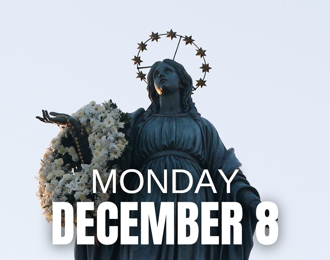The Solemnity of the Immaculate Conception of the Blessed Virgin Mary, Monday, December 8, is a Holy Day of Obligation. Our Mass times will be at 8:30AM (with the school) and 6:30PM. The regularly 7:45AM Mass that morning is cancelled.