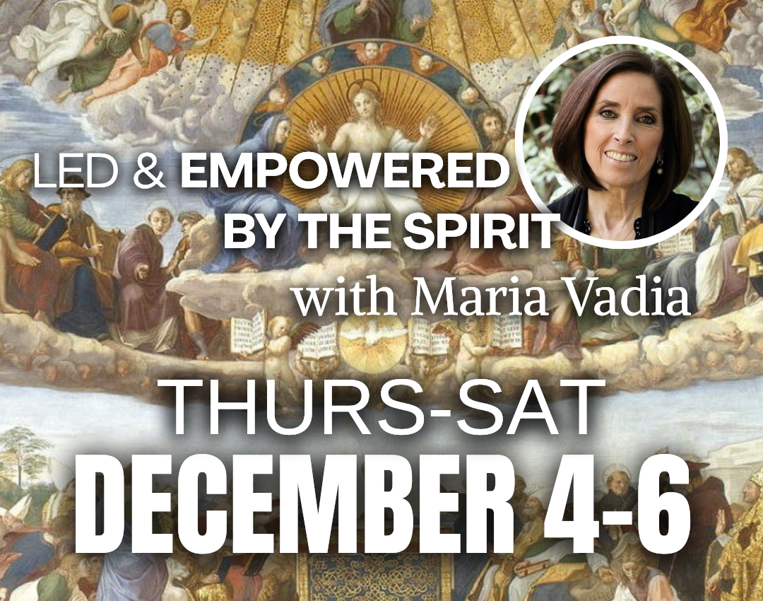 Save the date for special events featuring Maria Vadia (A Catholic Evangelist, Author, and Spirit-filled Preacher) hosted by the Encounter School of Ministry. On December 5-6, a Transformation Night and Retreat will be held at Holy Family Parish in Kirkland. The theme for this event will be Empowered by the Spirit. Additionally, Maria Vadia will be coming to St. Monica Parish on the evening of Thursday, December 4. The theme for this evening’s talk will be Led by the Spirit, Romans 8:14 “For those who are led by the Spirit of God are children of God.” More information about these events will be shared in the coming weeks. We hope you’ll plan on attending!